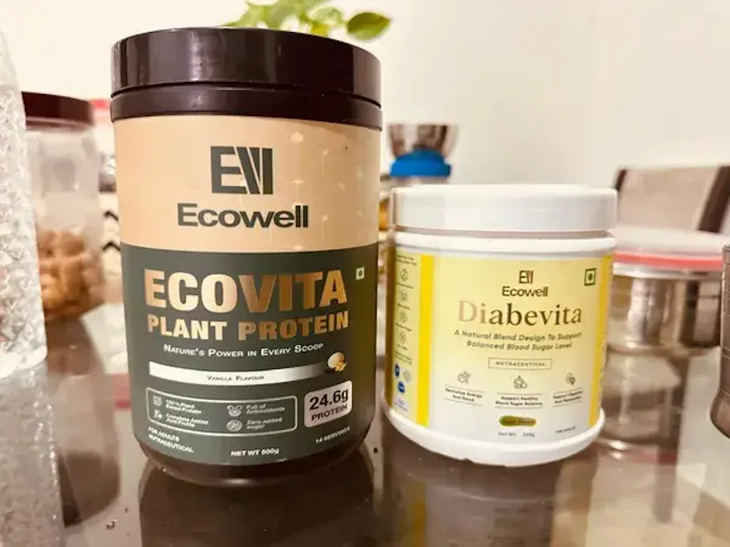 Support blood sugar and build lean muscle: Diabevita (250g) — FSSAI-certified herbal formula with chromium & vitamin D2 for blood sugar and insulin support — plus Ecovita — a pea + brown rice + flaxseed protein delivering 24.6g complete protein per serving.